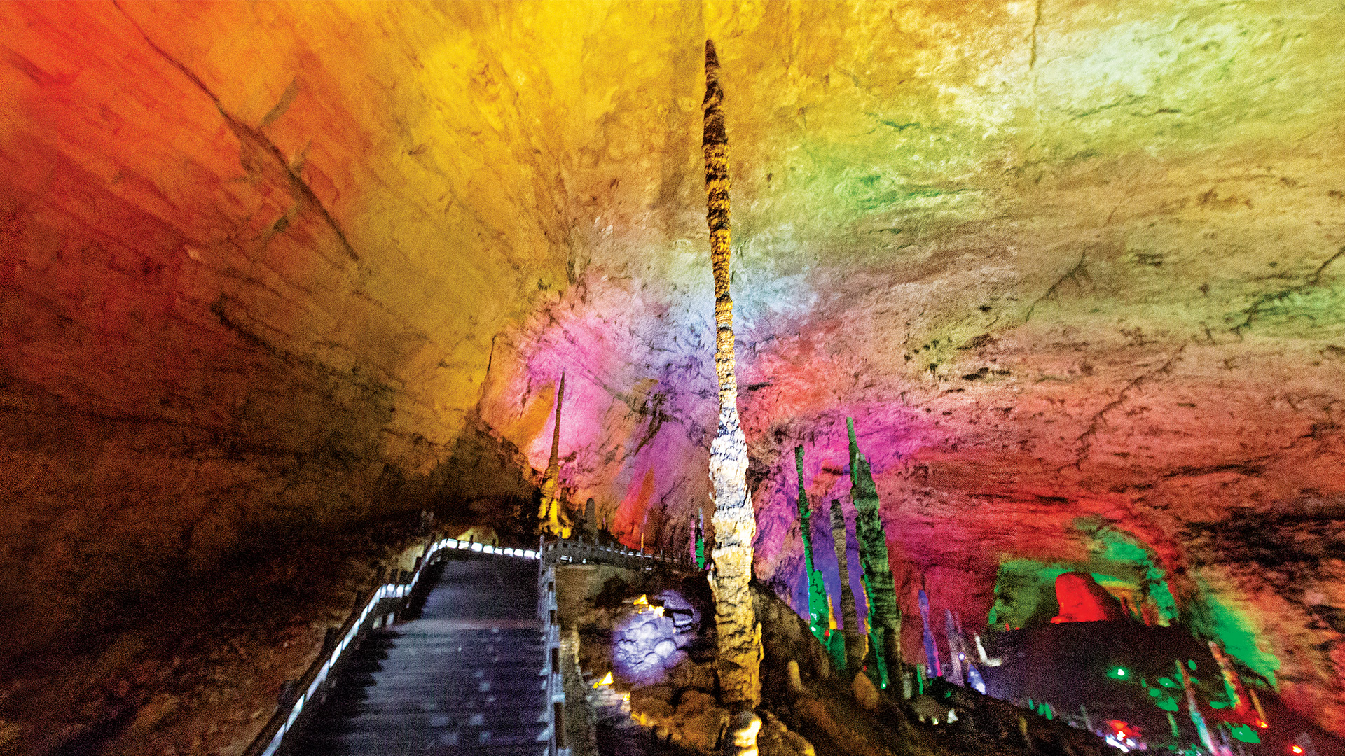 黃龍洞內(nèi)最高的石筍,頂天立地,直插云霄。